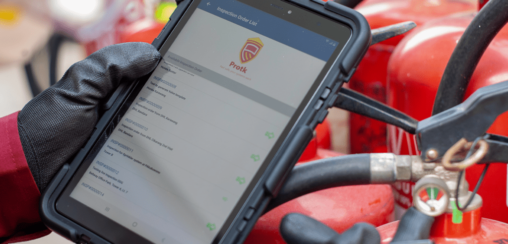 Teknisi Protk menggunakan tablet digital untuk mencatat data layanan yang terkait dengan aset Anda dan memberikan penyelesaian pelaporan yang cepat. Protk menyediakan portal pelanggan daring bagi Anda untuk mengakses semua laporan yang relevan.